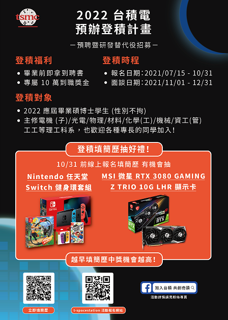 (台積電徵才)台積電預聘暨研發替代役-預辦登積計畫活動 2021-09-24 最新消息 EDM_2_中原 預辦登積計畫EDM_Final 1 You Might Also Like 【114年大專校院職涯輔導心得競賽】 入圍名單 2025-09-25 中原大學2025校園徵才就業博覽會報名資訊 2025-06-13 【職涯處公告 得獎名單】114年 「我的見習經歷–職業體驗心得競賽」 2025-10-18